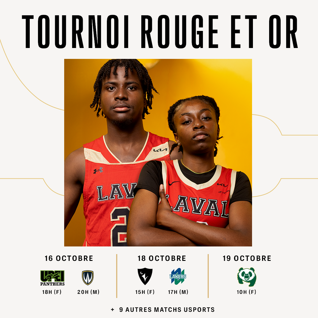 Jour par jour, voici l’horaire du Tournoi Rouge et Or de basketball. Tous les matchs se tiendront à l’Amphithéâtre Desjardins – Université Laval