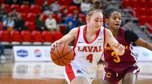 Brinly Holt a donné le ton avec un panier de trois points dès la 12e seconde du match. Le Rouge et Or n’a jamais tiré de l’arrière par la suite. En avant par 19 à la mi-temps, les protégées de Guillaume Giroux ont limité les locales à 16 points lors des 20 dernières minutes d’action. Frédérique Beaudry-Blais a été la meilleure des siennes avec 16 points, dont 12 sur des tirs du centre-ville. Léa-Sophie Verret a pour sa part récupéré neuf rebonds, les neuf en défensive.